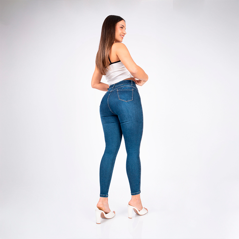 Un modelo versátil y femenino con tiro alto que define la cintura y corte skinny ajustado que resalta la silueta junto con su correa. Confeccionado en denim stretch, ofrece comodidad y libertad de movimiento sin perder estilo. Perfecto para looks casuales o más elegantes.